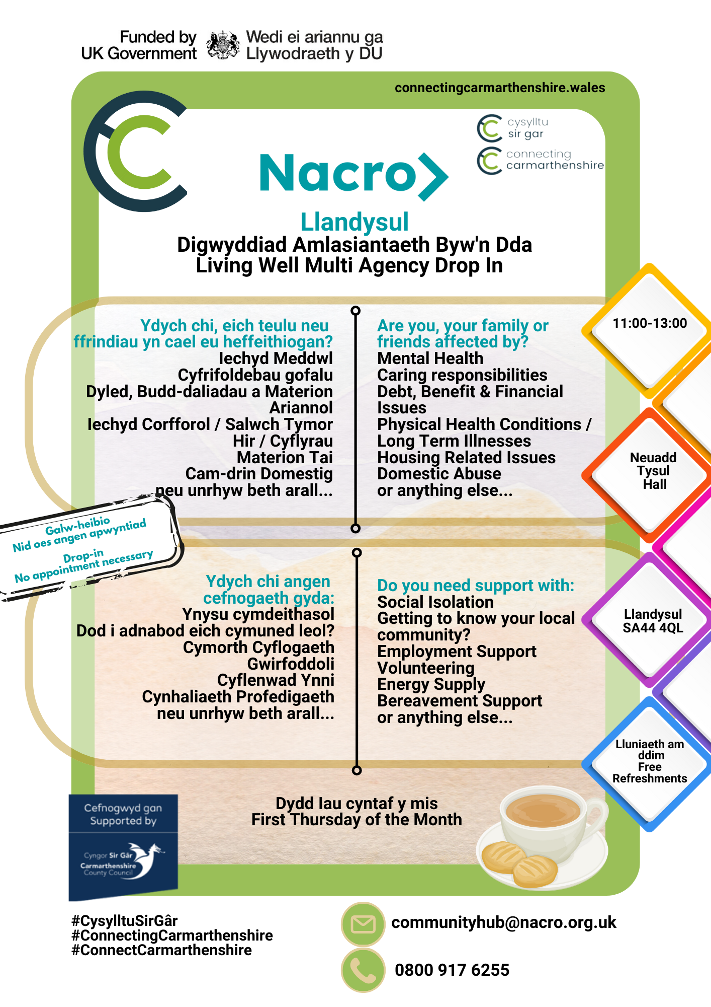 Where? Lampeter Wellbeing Centre, Peterwell Terrace, SA48 7BX