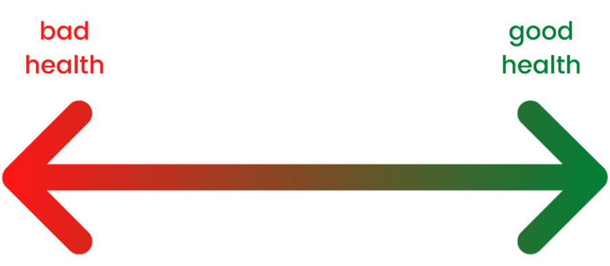 Think about your health as a sliding scale that you are constantly moving up and down, between good health and bad health and you can be at any point in-between.