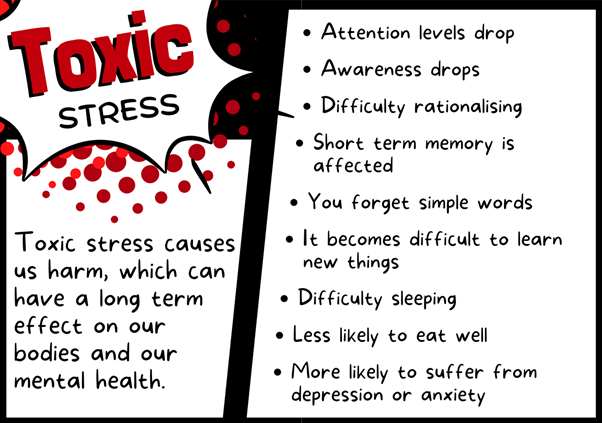 Over time, if we suffer from too much bad stress, it can become worse and turn into toxic stress.