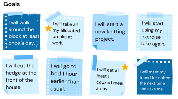 Set yourself 3 goals that you think will help you to do this. They can be as big or small as you want them to be. Make sure they are manageable and realistic or you will set yourself up to fail before you even begin!